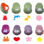 色々な形や可愛い絵柄がセットになった紙専用のクラフトパンチ、型抜きです。